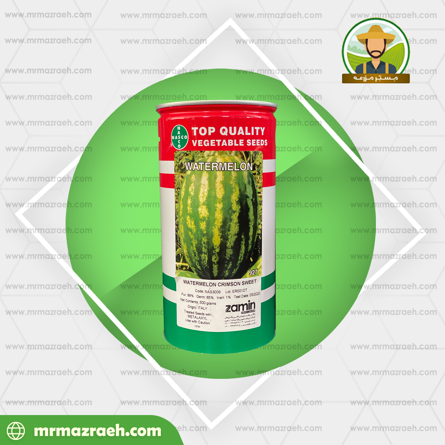 فنوتیپ رقم: تیپ کریمسون، بیضی خط دار، وزن میوه 8 تا 10 کیلوگرم، پوشش عالی، گوشت قرمز